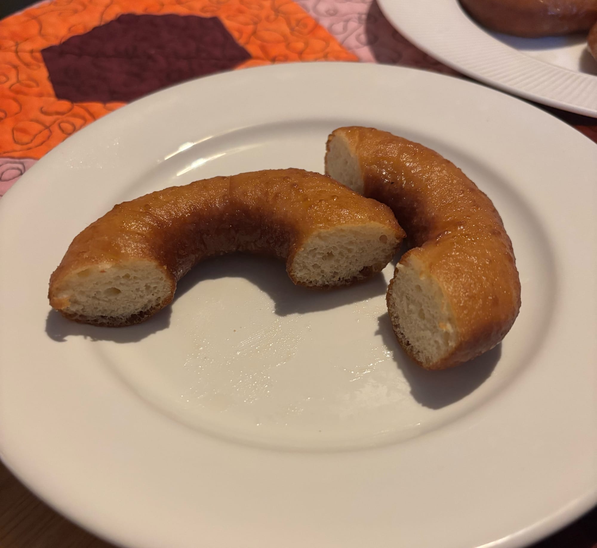 And then, the technical - doughnuts! Pushing the limits of what I’d call bread (is bread literally anything with yeast? Is Marmite bread?) but delicious, nonetheless. Also, deep-frying means we can’t technically call this baking. All semantics aside, let's see how I fried. (I’m sorry. I’m very tired.)