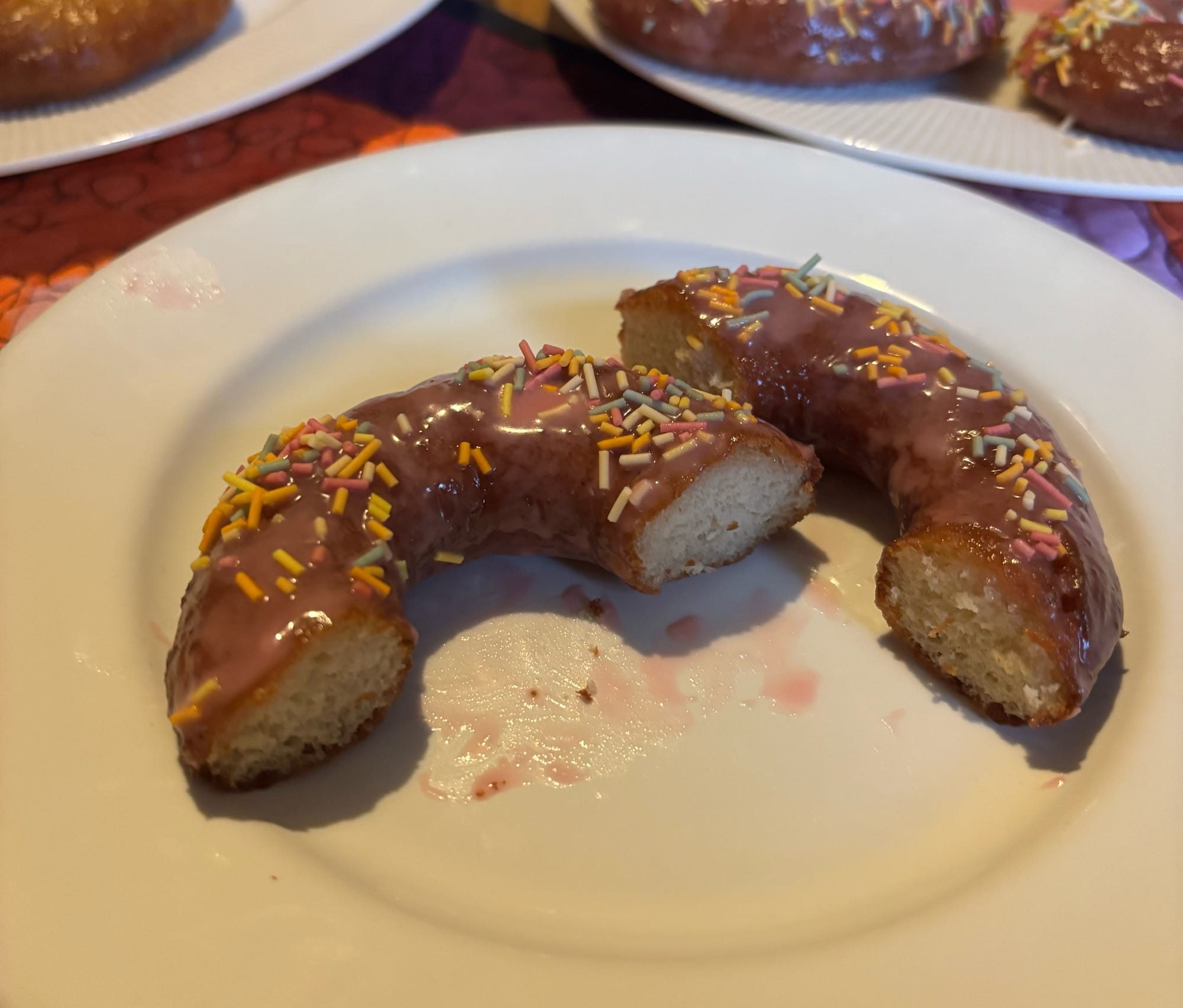 Was this a fair challenge? It was so close to being one. Just fifteen, even ten extra minutes could have made this fair. For bread-based challenges, it's always worth looking at the published recipe. Paul Hollywood says the first rise should take an hour. The second rise should take forty-five minutes to an hour. That leaves, potentially, forty-five minutes to knead the dough, shape the doughnuts, cook the doughnuts, and cool them enough for decorating. That really isn’t all that long. It might seem like I’m nit-picking here, but is it so hard to give the bakers a decent chance?