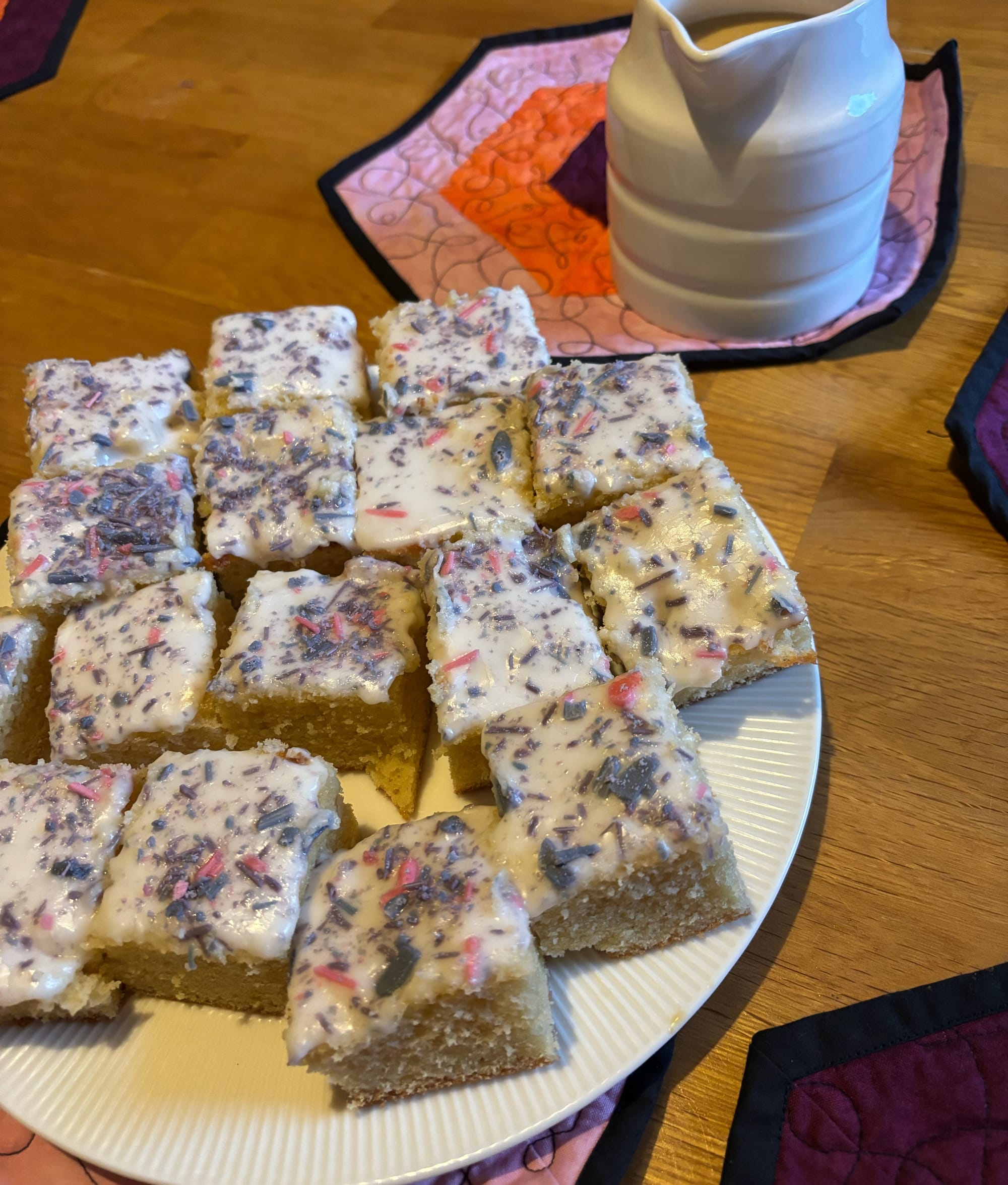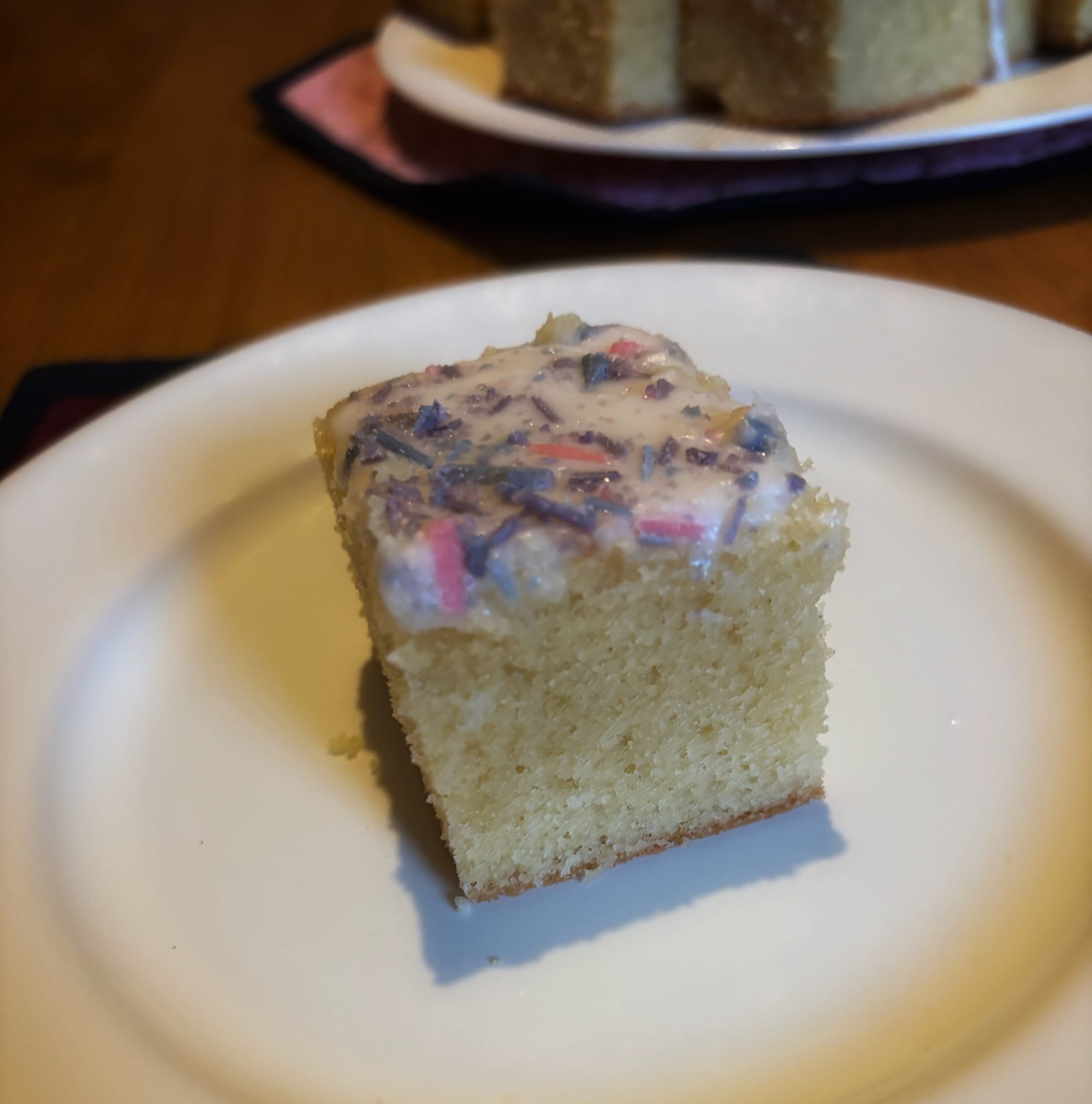 Speaking of ‘meh’ things - school cake! Now, this is a familiar cake to me, but I’ve never heard it called ‘school cake’. I didn’t think this very boring plain-sponge-with-icing-and-sprinkles had a name. Is it a regional situation? Either way, what an exciting technical!