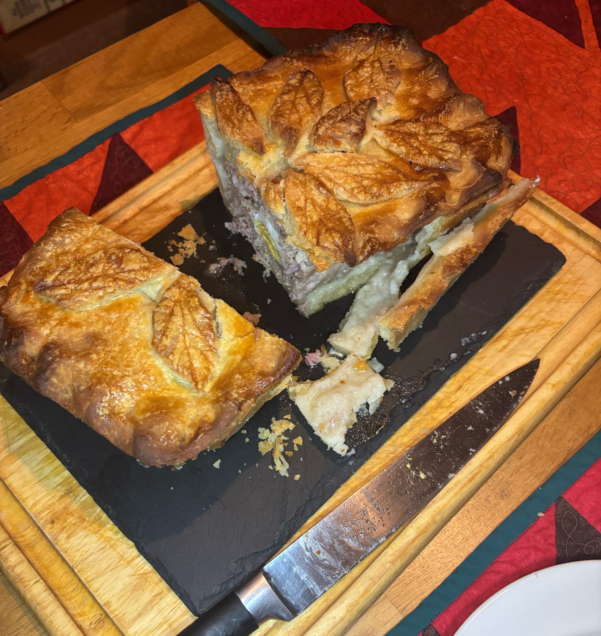 I’m giving myself a four for appearance, because a side of the pie is very much not attached to the rest of it. I’ll give myself a six for flavour. As my partner so succinctly put it, ‘meat is good’. So, can I make a pork pie? Not really. BUT can I season meat? Apparently so. I’ll take that. And I’ll never make this again.
